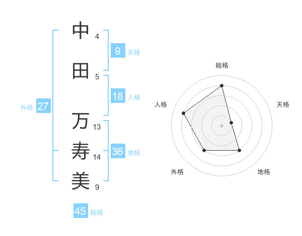 中田 万寿美さんを姓名の画数から五運を鑑定