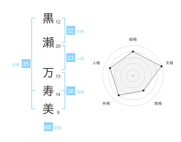 黒瀬 万寿美さんの天格は32画の5点!
