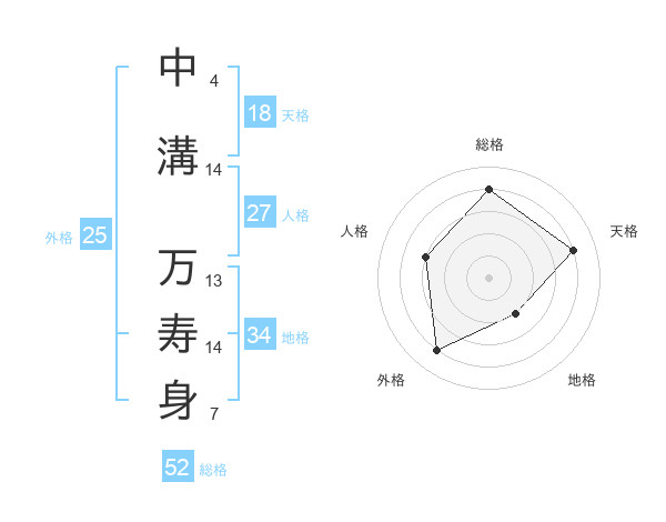 中溝 万寿身さんの総格は52画の4点!
