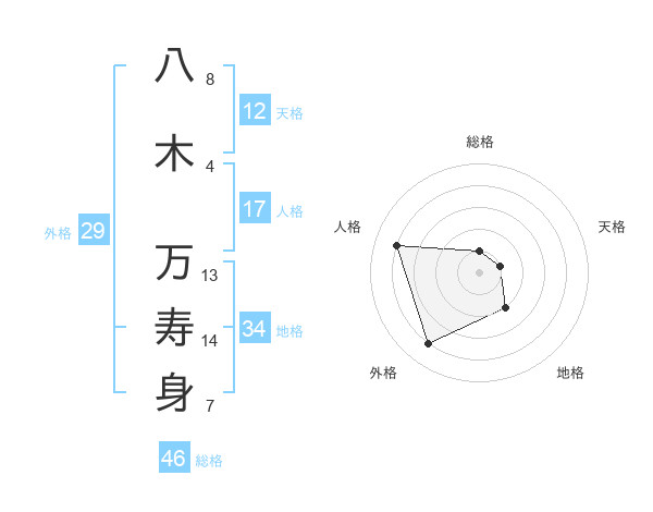 八木 万寿身さんの地格は34画の2点!