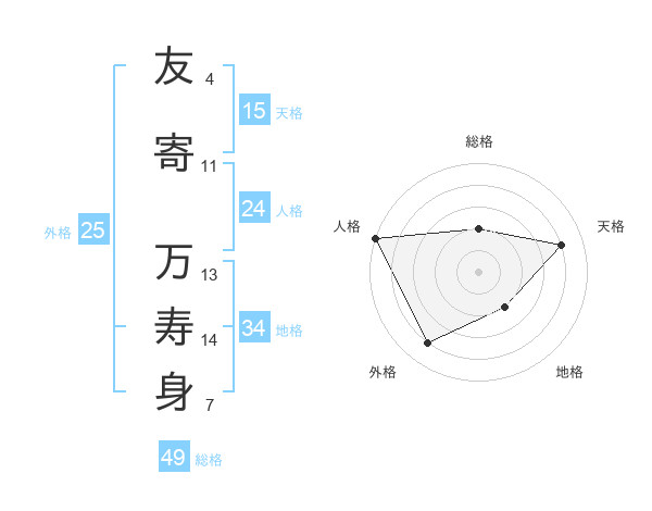 友寄 万寿身さんの総格は49画の2点!