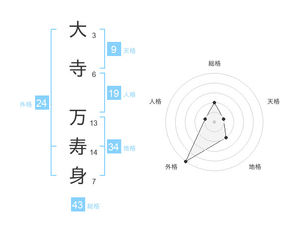大寺 万寿身さんを姓名の画数から五運を鑑定