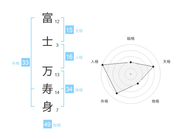 富士 万寿身さんを姓名の画数から五運を鑑定