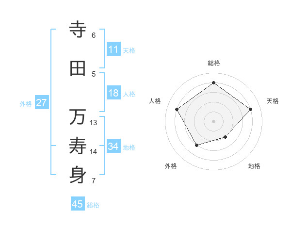 寺田 万寿身さんを姓名の画数から五運を鑑定