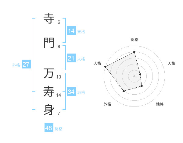 寺門 万寿身さんの総格は48画の4点!