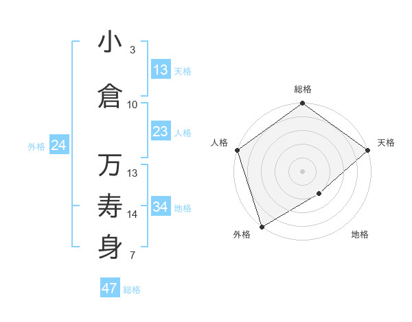 小倉 万寿身さんを姓名の画数から五運を鑑定