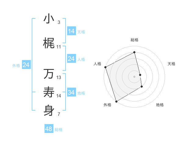 小梶 万寿身さんの総格は48画の4点!
