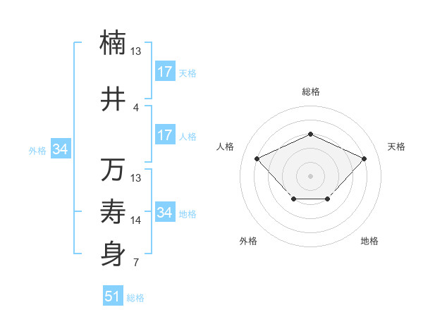 楠井 万寿身さんを姓名の画数から五運を鑑定