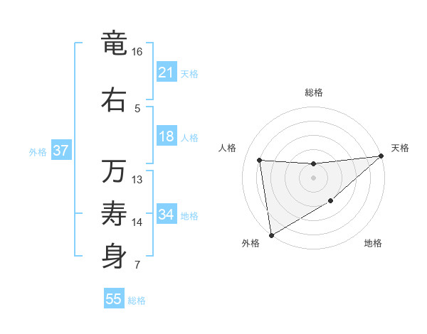 竜右 万寿身さんを姓名の画数から五運を鑑定