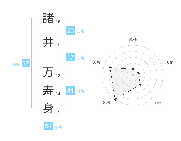 諸井 万寿身さんを姓名の画数から五運を鑑定