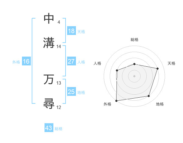 中溝 万尋さんの天格は18画の4点!