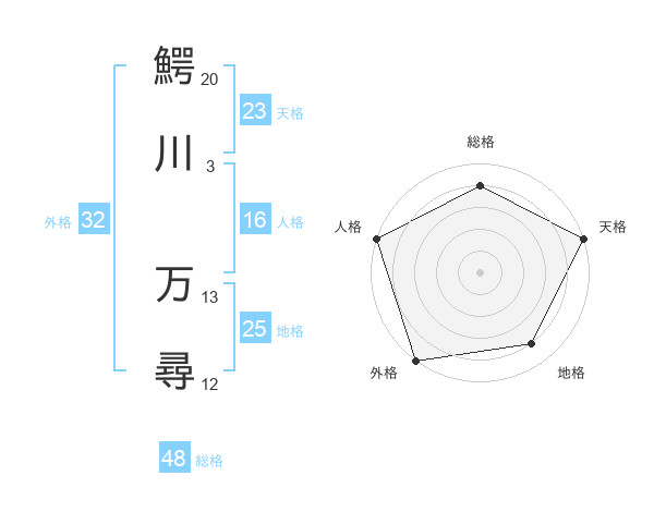 鰐川 万尋さんの天格は23画の5点!