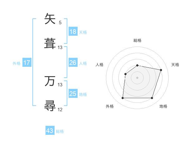 矢葺 万尋さんを姓名の画数から五運を鑑定