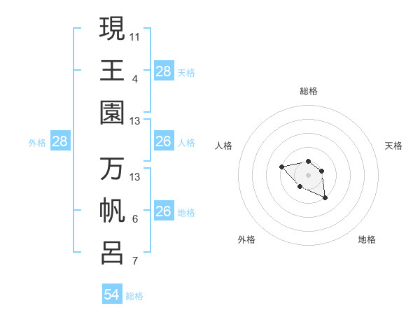 現王園 万帆呂さんを姓名の画数から五運を鑑定
