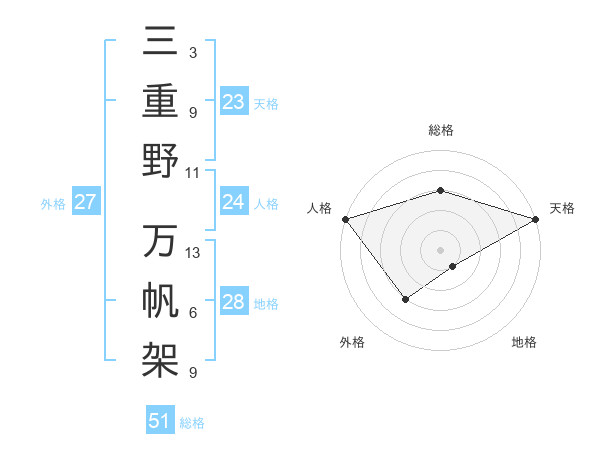 三重野 万帆架さんの総格は51画の3点!
