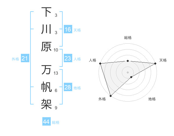 下川原 万帆架さんを姓名の画数から五運を鑑定