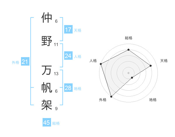 仲野 万帆架さんを姓名の画数から五運を鑑定