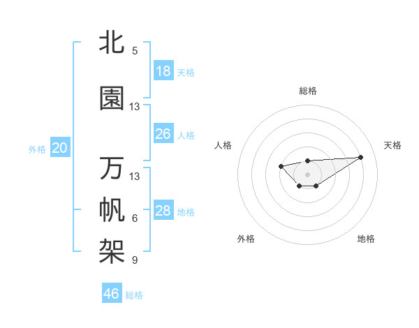 北園 万帆架さんを姓名の画数から五運を鑑定