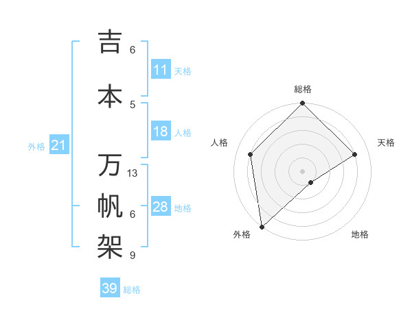 吉本 万帆架さんを姓名の画数から五運を鑑定
