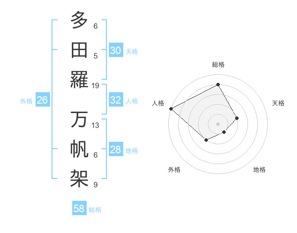 多田羅 万帆架さんを姓名の画数から五運を鑑定