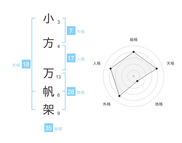 小方 万帆架さんの総格は35画の4点!