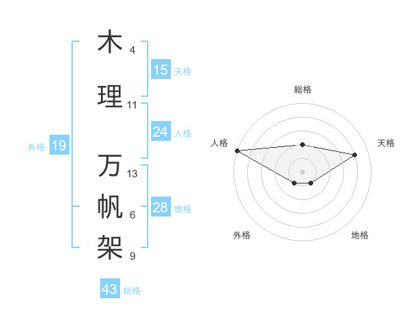 木理 万帆架さんを姓名の画数から五運を鑑定