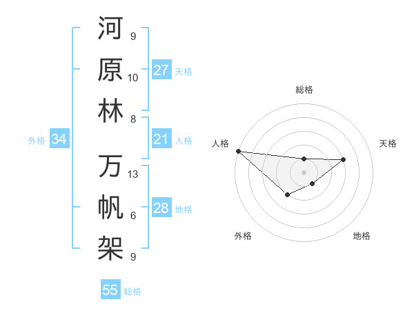 河原林 万帆架さんを姓名の画数から五運を鑑定