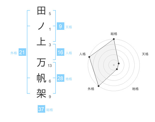 田ノ上 万帆架さんを姓名の画数から五運を鑑定