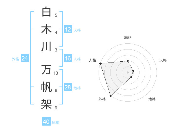 白木川 万帆架さんを姓名の画数から五運を鑑定
