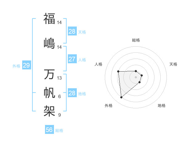 福嶋 万帆架さんの総格は56画の1点!