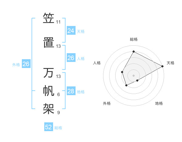 笠置 万帆架さんの総格は52画の4点!