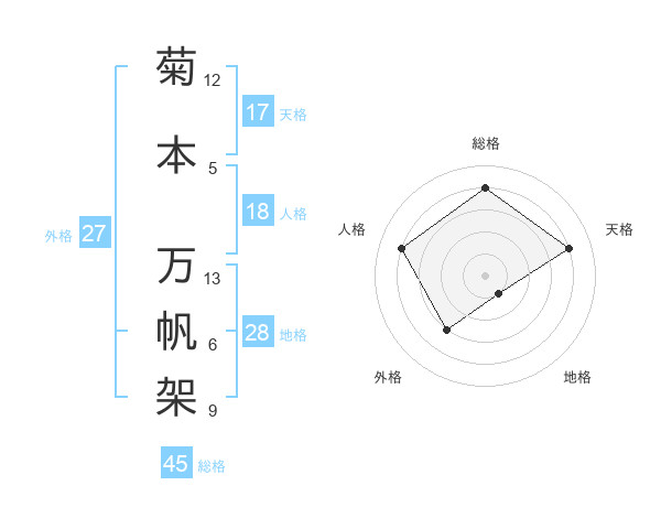 菊本 万帆架さんを姓名の画数から五運を鑑定
