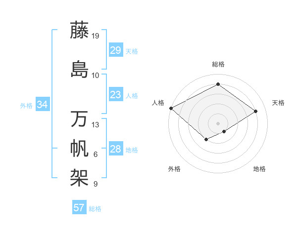 藤島 万帆架さんを姓名の画数から五運を鑑定
