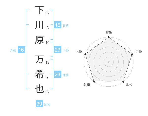 下川原 万希也さんの総格は39画の5点!