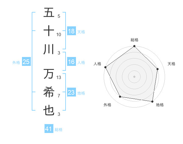 五十川 万希也さんを姓名の画数から五運を鑑定