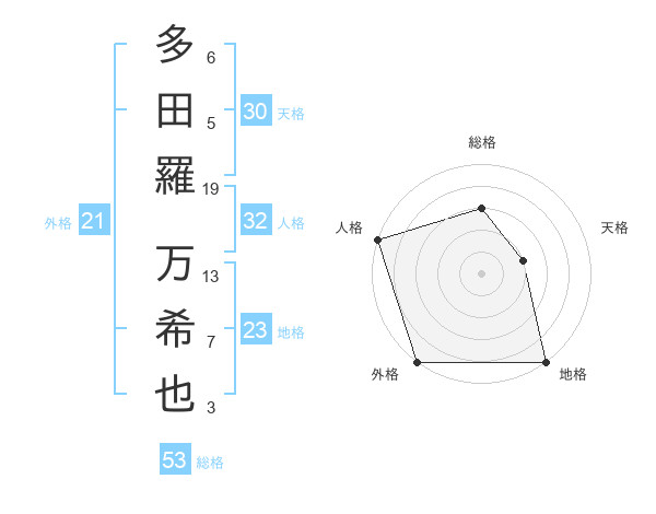 多田羅 万希也さんを姓名の画数から五運を鑑定