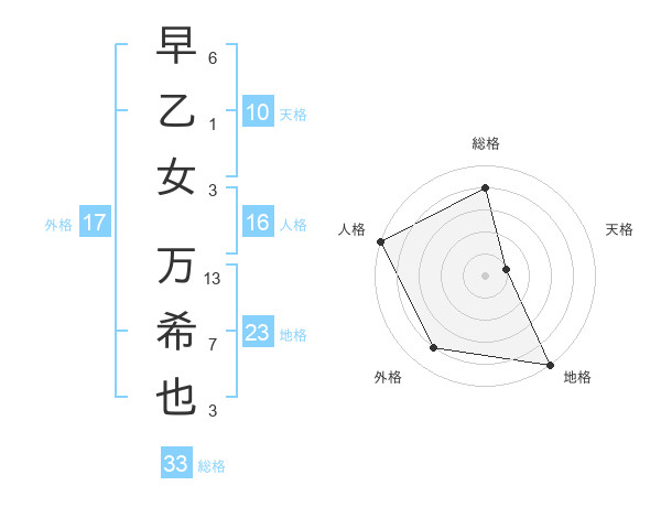 早乙女 万希也さんの総格は33画の4点!