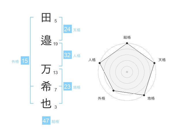 田邉 万希也さんを姓名の画数から五運を鑑定