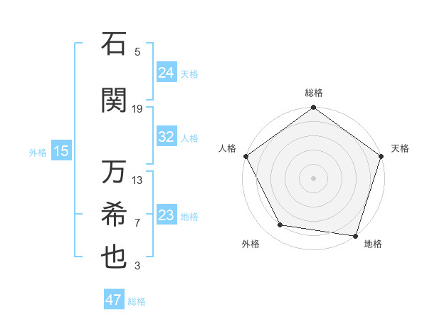 石関 万希也さんの総格は47画の5点!