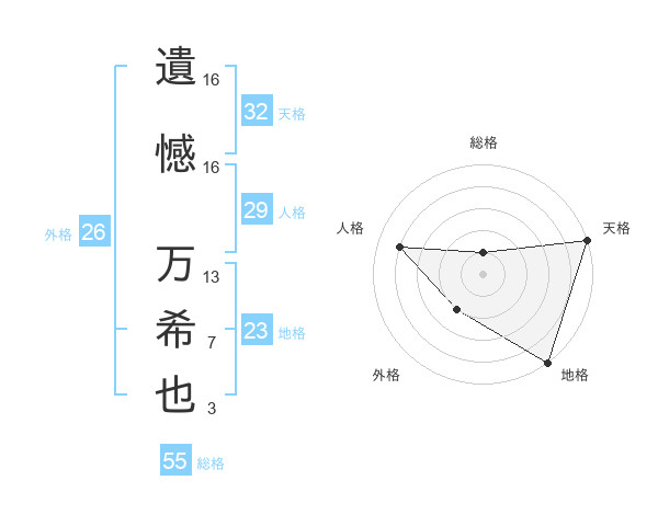 遺憾 万希也さんの総格は55画の1点!