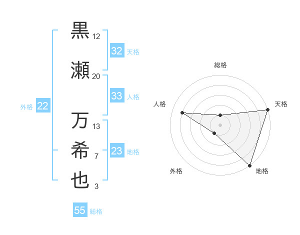 黒瀬 万希也さんを姓名の画数から五運を鑑定