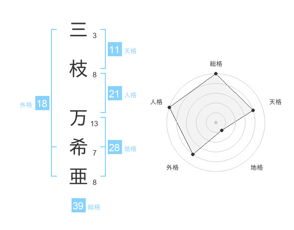 三枝 万希亜さんを姓名の画数から五運を鑑定