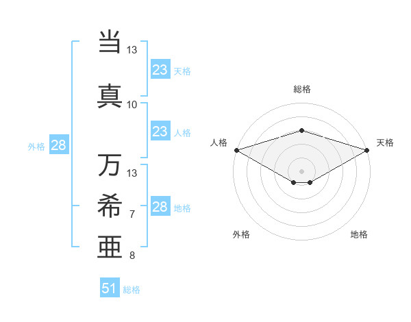 当真 万希亜さんを姓名の画数から五運を鑑定