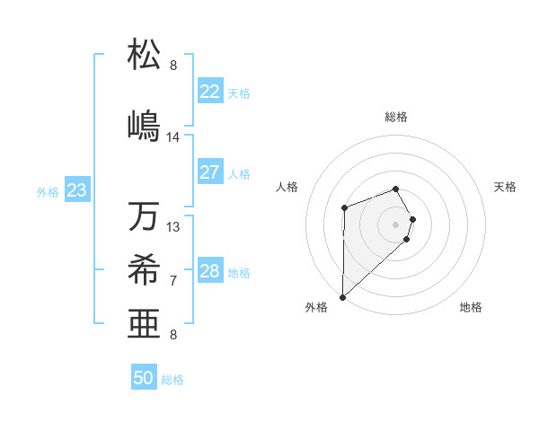 松嶋 万希亜さんを姓名の画数から五運を鑑定