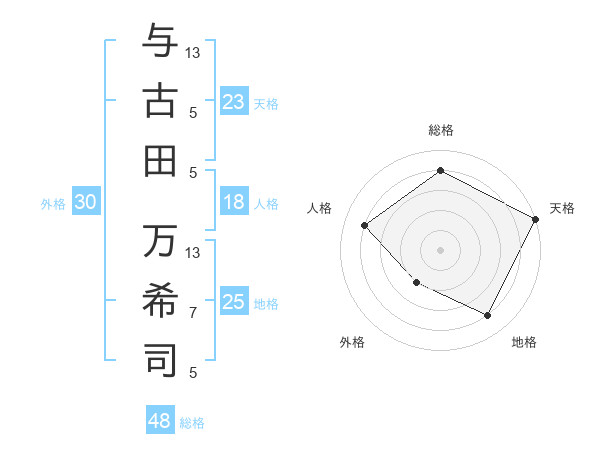 与古田 万希司さんを姓名の画数から五運を鑑定