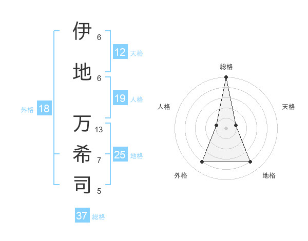 伊地 万希司さんを姓名の画数から五運を鑑定