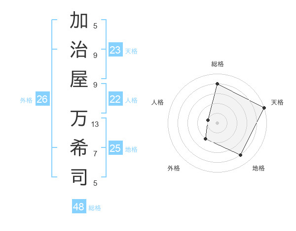 加治屋 万希司さんを姓名の画数から五運を鑑定