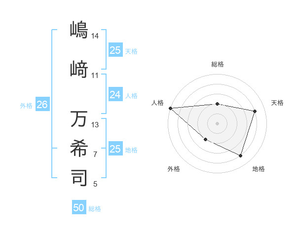 嶋﨑 万希司さんの総格は50画の2点!