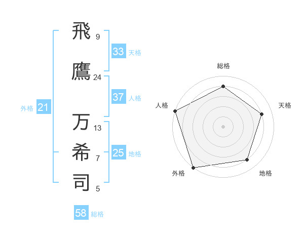 飛鷹 万希司さんを姓名の画数から五運を鑑定