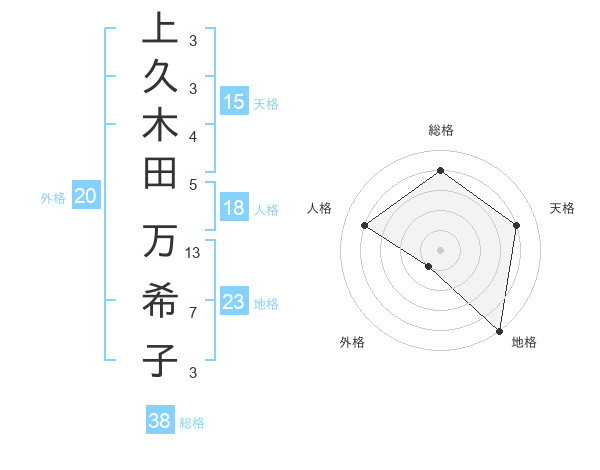 上久木田 万希子さんを姓名の画数から五運を鑑定